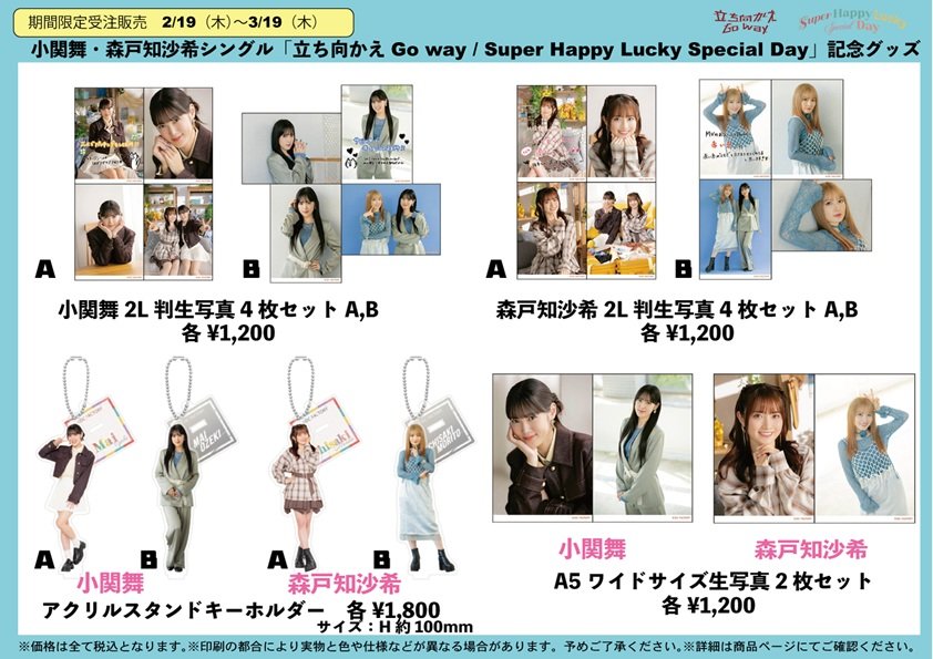 【UF Goods Land】小関舞・森戸知沙希シングル「立ち向かえGoway/Super Happy Lucky SpecialDay」記念グッズ グッズ公開!