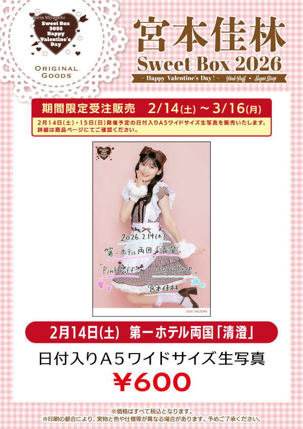 【UF Goods Land】宮本佳林 Sweet Box 2026 ~Happy Valentine's Day!~「Pink Puff」・「Sugar Drop」グッズ公開!