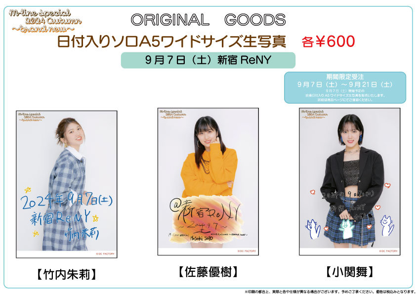 9/7開催予定の日付入りソロA5ワイドサイズ生写真を販売いたします。