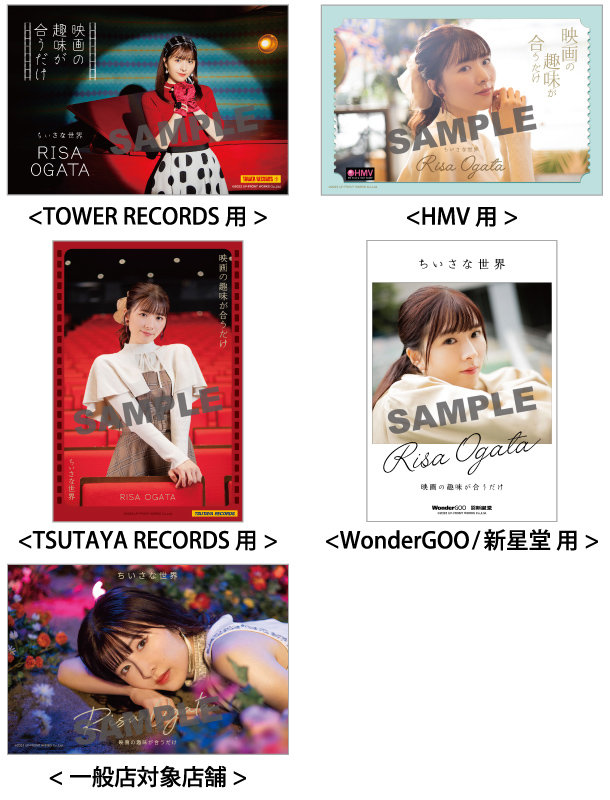 2023年12月6日(水)に発売される小片リサ2ndシングル「映画の趣味が合うだけ/ちいさな世界」の初回生産限定盤A・B及び通常盤A・B・Cを下記店舗にてお買い求めいただいたお客様に先着でオリジナル特典をプレゼントいたします。
