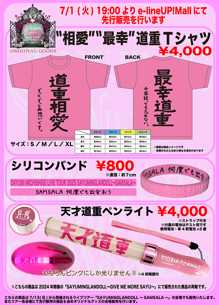 7/27(日) NAGOYA JAMMIN' (愛知) 道重さゆみ LIVE TOUR 2025『SAYUMINGLANDOLL~SAMSALA~』グッズ会場販売実施のお知らせとお願い