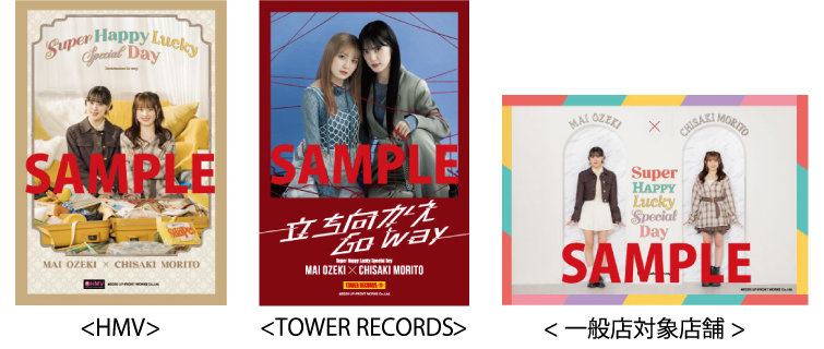 2025年12月17日(水)に発売される2025年12月17日(水)発売 小関舞×森戸知沙希 コラボレーションシングル『立ち向かえGo way/Super Happy Lucky Special Day』の初回生産限定盤及び通常盤を下記店舗にてお買い求めいただいたお客様に先着でオリジナル特典をプレゼントいたします。